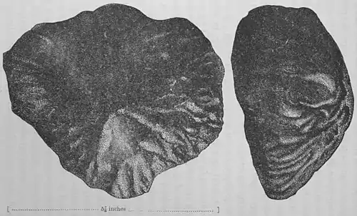 Fig. 39.—The Middlesborough Meteorite, showing corrugations of melted matter. March 14, 1881.