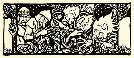It was wonderful, then, that Fionn should have remembered all that happened to him in that wide-spun moment, but in this tale there is yet more to marvel at; for not only did Fionn go to Faery, but the great army which he had marshalled to Ben Edair[1] were translated also, and neither