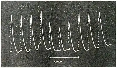 I have frequently noticed that a depression of excitability occurred when the sky was darkened by passing clouds. This is clearly seen in the above records obtained with the Resonant Recorder. Uniform sub-maximal