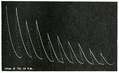 Fig. 25. Evening record from 6 to 10 p.m., showing gradual depression of excitability.