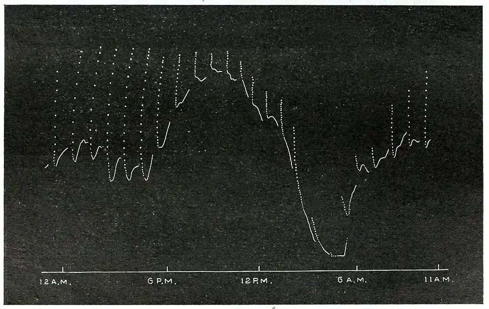 Fig. 27. Record of diurnal variation of excitability; it exhibits marked nyctitropic movement.