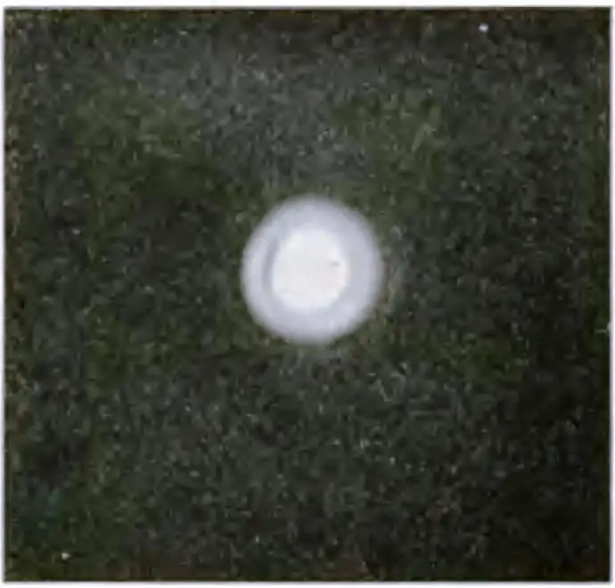 Fig. 90 is an actual photograph of the image of a point of light taken with an aperture smaller than that of a telescope, but otherwise under the same conditions under which a telescope is used. It is easy to see that, surrounding the point of the image, there is a more or less defined white disc, and beyond this a dark ring. Outside of this dark ring there are a bright ring and another dark ring. Theoretically, there are a great number of those rings; practically, we see only one or two under the most favorable conditions.