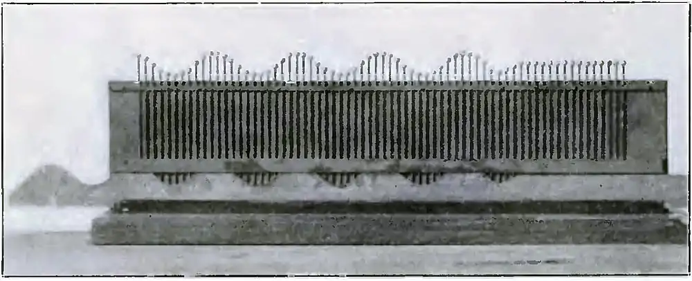One of the difficulties encountered in studying wave motion is the rapidity of the propagation of the waves. A fairly moderate speed is attained by the waves propagated along a spiral spring. If one end of such a spring be fastened to a wooden box on the wall of the lecture-room, while the other end is held in the hand, we can see that any motion communicated by the hand is successively transmitted to the different parts of the spring until it reaches the wall. Here it is reflected back toward the hand, but with diminished amplitude. We can also see that any kind of transverse motion, i. e., motion at right angles to the length of the spring, whether regular or irregular, gives rise to a corresponding wave form which travels along the spring with a velocity that is the same in every case.