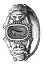 Gyges was (at first) a shepherd in the service of the Lydian king. Where he pastured his flock there chanced a heavy rain, and an earthquake, and a chasm opened in the land. He descended into this chasm marvelling, and beheld, with other wonderful things, a horse of brass which was hollow, with doors, looking through which he saw a corpse which seemed of a human form, having nothing but a gold ring on the finger, which he drew off, and took away. He soon discovered that when he turned the bezel towards him, he became invisible, but turning it from him, was at once seen as before. By the use of this ring, and the aid of the wicked queen, Gyges supplanted his sovereign, and seized upon the throne.