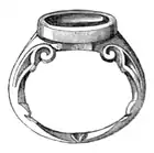 Roman Ring of the Imperial Age. The Romans at first were content with iron rings, and long after the introduction of gold rings those who affected the simplicity of the good old times kept up the custom of their forefathers, as is told of Marius, in his triumph over Jugurtha. For long the right to wear a gold ring was limited to senators, magistrates, and knights; but the great officers of the Republic gave this right, though not without causing serious offence to the knights; and afterwards the Emperors did the like, and the right was at last extended to all Roman soldiers, and then to all citizens. The apostle’s mention of the rich man with the gold ring (James ii. 2), may refer to this ring; but it is probable that only a hoop of gold was used as the distinctive sign of rank, and that persons without the right might wear rings of this metal in other forms. We all remember reading of Hannibal’s boastfully sending to Carthage a bushel (or three bushels) of rings, taken from the knights (and senatorial persons), slain at Cannæ.