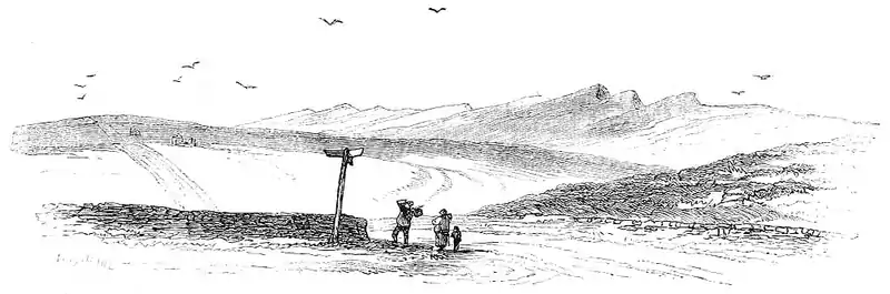 Near the wall, and on the eastern declivity of the defile, is a spring, popularly called King Arthur’s Well, but, by another tradition, it is understood to have been the well in which King Ecfrid was baptised by the Missionary Paulinus. We took a draught of the water, which is cool and pure.