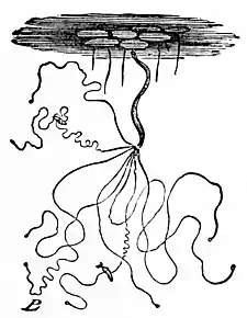 There is a group of radiates termed Hydroids. One of these, the fresh-water hydra, is represented in Fig. 1, as it is often seen attached to the under surface of a floating leaf. Prof. Dana says: "It is