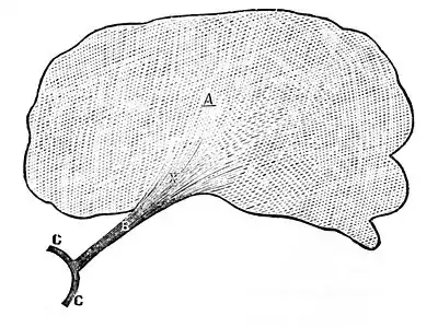 A, Brain; B, Visual Nerve; C, Retina; X, Boot of the Optic or Visual Nerve.