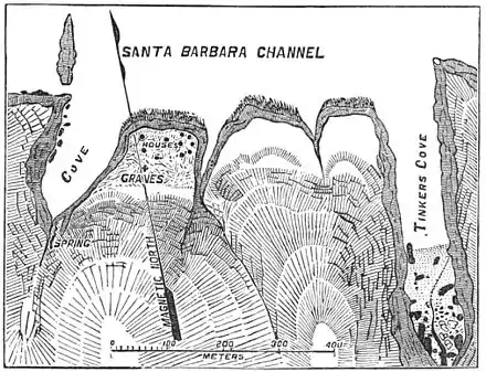 rocks bearing eatable mollusks, fish in the adjoining kelpy waters, and game in the neighboring country. Water in small rivulets and springs was preferable to larger streams and rivers, unless these were stocked with fish. A commanding view was subordinate to the condition of the soil and the proximity of water, especially on the islands in Santa Barbara Channel, where no surprising enemy was to be guarded against; there a small boat-landing was one of the main considerations, because the islander's sustenance was mainly derived from