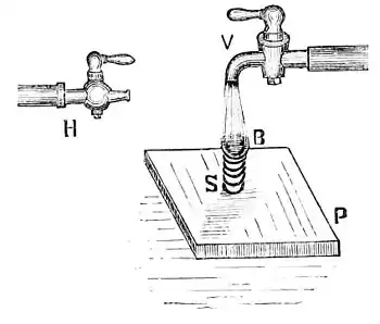 If a ball B (Fig. 2) is secured to the top of a spiral spring S, attached to a platform P,, and a jet of water V projected vertically upon it, the spring will be compressed until its resistance is equal to