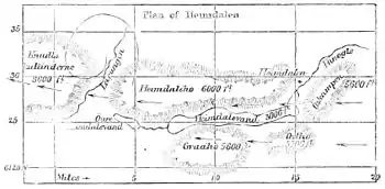 Fig. 2.—Plan of Heimdalen drawn to scale, in which the course of the Lemmings, indicated by the arrows, is seen to crops Lake Heimdalsvand and the swift river Leirungen, both of which might be avoided by a slight détour. The river is of glacier origin, very cold and very rapid.