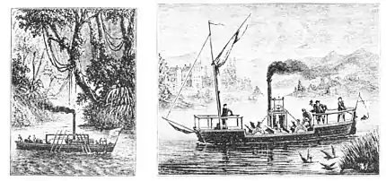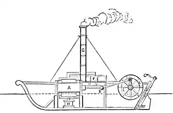 This boat, having attained a speed of five miles an hour, another was constructed (Fig. 48), and was tried in 1789. This vessel was