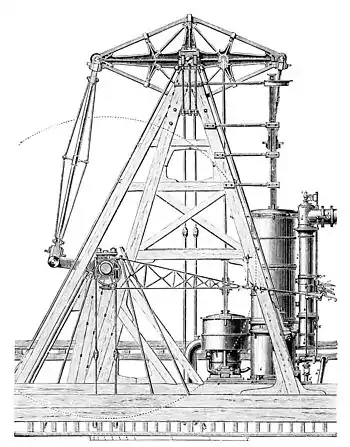 The valve-gear is usually that known as the "Stevens valve-gear." It was invented by Messrs. Robert L. and Francis B. Stevens, in 1841. The "gallows-frame" took its present form in the hands of