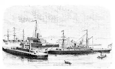 with her stores, 5,000 or 6,000 tons, as she starts on her voyage, moved by engines more than equal in power to the united strength of 5,000 horses. Nothing can more thoroughly awaken a feeling of awe than the sight of immense structures like the great modern iron-clads (Fig. 65), vessels having a total weight of 8,000 to 10,000 tons,