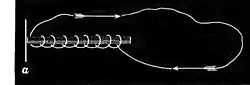 Fig. 3. but what we have really to deal with is something infinitely more delicate than this. The piece of soft iron of which we have been speaking, shown at a, Figs. 3 and 4, represents what is called the diaphragm of the telephone, which is a thin, circular sheet of iron, a couple of inches in diameter, held by its rim, and adjusted so that its centre comes very close to the end of the magnetized bar. And the motions which now concern us are simply the vibrations produced in this iron membrane by the beats against it of agitated air. Everybody knows that sounds are propagated through the aerial medium by waves that travel swiftly from their sources, and that we hear them because the waves strike in rapid succession upon the drum of the ear. It is also well understood that these waves differ greatly in their rates, depending upon the rapidity of vibration in the sounding body; and, moreover, that they are very complex, there being waves within waves of various orders in a single tone. It is the special complexity of these wave-systems, in the different cases, that gives those peculiarities of tone that mark different musical instruments and distinguish the voice in different individuals. These