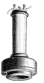 Fig. 7. cable conversation has been carried on between England and France across the English Channel. Conversation has also been held through the bodies of sixteen persons standing hand-in-hand. The telephone has been regarded as a toy, or a curiosity to be played with; but, while it is undoubtedly extremely interesting as a novelty, it is very much more than this; it is, scientifically and practically, a great success. There are, undoubtedly, difficulties in its use, but, considering that it is a contrivance but of yesterday, the wonder is that it is so perfect. The telegraph was much longer regarded as an impracticable invention, and it is impossible to say how soon the telephone may not take rank among the necessities of common life. If we may trust the analogies of experience, its difficulties are certain to be overcome, although it will probably never meet the exaggerated expectations of many people. Some of the obstacles to the realization of the popular impression of its capabilities have been so well stated in Chambers's Journal, by a gentleman skilled in the working of the telegraph, and who made a series of interesting experiments *on the telephone, that we may fitly close our article by making free extracts from his paper, accompanied by some slight revision: When a telegraphist first gets into his hand this beautifully simple and electrically delicate instrument, his first inclination is to test its carrying-power. This is, of course, a closet experiment, not working with actual telegraph-line, but with 'resistance' equivalent to a telegraph-line of stated length. An experiment of this nature gives better results than could be obtained by a veritable line, because the insulation is, so to speak, perfect. No leakage at undesigned points of contact, or disturbance from unfavorable atmospheric conditions, is felt, and the experiment is entirely under the observer's control. The apparatus used is designed to offer the same labor for the electric current to overcome as would be offered by a stated length of outside telegraph-line. This artificial resistance is nicely graduated, and, as the method of testing was suggested by Ohm, a German electrician, the unit of resistance is termed an 'ohm.' Removing the telephone to such a distance that the two observers were 'out of ear-shot,' the test with resistance was tried, and with a resistance of 1,000 ohms—roughly speaking, equal to seventy miles of a well-constructed line—the sound was perfect, although not very loud. Every articulation of