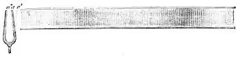 fork, having an elasticity of 440 vibrations per second, and set it a-vibrating. The prong of the fork, in moving from a to a', pushes the layer of air in front of it, which, in its endeavor to recover from this huddling, pushes against the next layer, which is thus in its turn compressed, the compression or push passing in this way, from layer to layer, through the air—the wider the swing of the prong the greater the compression in the air, and the louder the sound; meanwhile the prong moves back from a'
