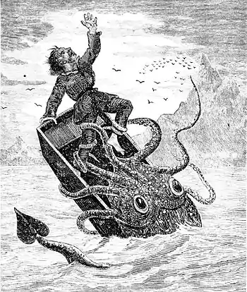 perfect sucking-disks, or some two thousand air-pumps; the edges are also cut into sharp, saw-like teeth, as hard as steel, and these are buried in the flesh of its prey. With all these appliances it could easily reach a distance of twenty-five feet, and bring the body of a man to its mouth,