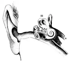 in a second in all directions through the surrounding air. They soon reach the drum-skin of the ear. The latter, being elastic, moves in and out with the air which touches it. Then this membrane, in its turn, pushes and pulls the little ear-bones 500 times in a second. The last bone, the little stirrup, finally receives the vibrations sent from the