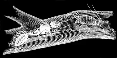 Ants sometimes undertake the dairy business. Being exceedingly fond of a milky fluid which exudes from two tubes situated on the hinder part of the bodies of certain plant-lice, called aphides, to procure it they resort to measures strangely intelligent for even the proverbially wise ant. They have been known to build mud stables in which the aphides were kept as stalled milch-cows. To cause the flow of milk, the ants irritate or rub the tubes with their antennæ.