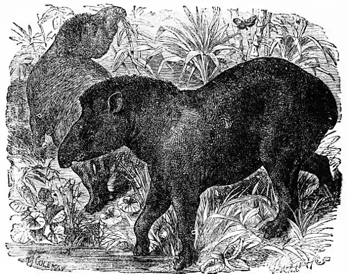 American Tapir (Tapirus americanus). The snout of this animal is a proboscis, to some extent is prehensile; hence approaching that of the Elephant.
