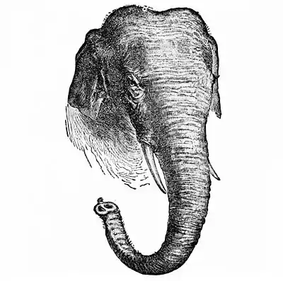 Asiatic Elephant (Elephas Indicus). Here the snout (proboscis) has attained the perfection of flexibility and prehensility.