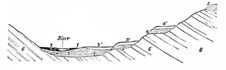 Terraced River-Valley—1, 2', 3', 4', and 5, are Terraces,