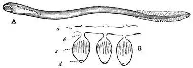 Aquatic Organs of the Food-Tract.—The gills or branchiæ of fishes are analogous in position and structure to those of crabs, but are morphologically different, as they are not developed from the skin directly, but from the lining of the pharynx. A powerful heart impels the blood rapidly through the gills, while these are bathed by water-currents produced by the pumping action of the mouth; so that rapid and constant changes are effected in both the blood and the aërating water. The branchiæ are comb-like fringes of minute blood-vessels,