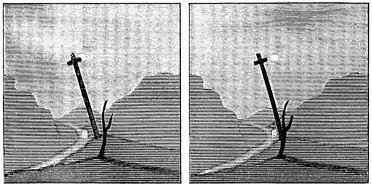 Copy the picture, of exact size, by scratching through the varnish, and then blacken the lines with ink. Hold the transparent plate at the distance of a foot from your eyes, and through it look at a point about five feet away. Very little motion of the plate is needed to get this point exactly aligned with each of the dots within the circles by looking with each eye in succession. Look at the point now with both eyes, and you will see, suspended in the air, probably just beyond the plate, apparently a solid cone of glass pointing toward you, the very fac-simile of our glass cone from which the pictures were taken.