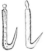 Fig. 8 is a large one, and has some peculiar zigzag markings on it, the significance of which is not known. Bone fish-hooks, as represented