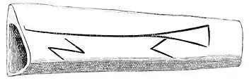 perhaps some sort of flute or whistle, is shown in Fig. 13. It is a hollow piece of bone, with six holes of different sizes made in one side,