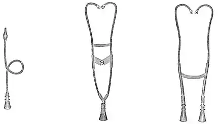 I know not who invented the instruments with flexible tubes, but I have no doubt that a search into medical history could tell us. I remember, however, that the first flexible stethoscope which I ever saw was the one depicted in Fig. 6, and used by Dr. Golding Bird when he saw out-patients in the year 1843. Being much crippled with rheumatism, and therefore not wishing to rise from his chair, he found