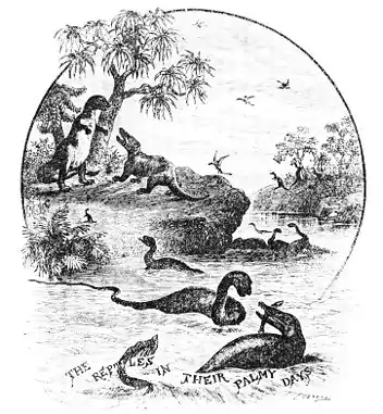 If we glance back to the far-off time when the ancient fishes were wandering round the shores and in the streams of the coal-forests, we find that the amphibia were not then the small, scattered groups they are now, but huge and powerful creatures, which sported in the water or wandered over the land with sprawling limbs, long tails, and bones on which gills grew, while their heads were covered with hard, bony plates, and their teeth were large, with folds of hard enamel on the surface.