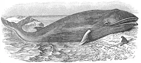 Few points of the structure of whales offer so great a departure from the ordinary mammalian type as the limbs. The fore-limbs are reduced to the condition of simple paddles or oars, variously shaped, but always flattened and more or less oval in outline. They are freely movable at the shoulder-joint, where the humerus or upper-arm bone articulates with the shoulder-blade in the usual manner, but beyond this point, except a slight flexibility and elasticity, there is no motion between the different segments. The bones are all there, corresponding in number and general relations with those of the human or any other mammalian arm, but they are flattened out, and their contiguous ends, instead of presenting hinge-like joints, come in contact by flat surfaces, united together by strong ligamentous bands, and all wrapped up in an undivided covering of skin, which allows externally of no sign of the separate and many-jointed fingers seen in the skeleton.