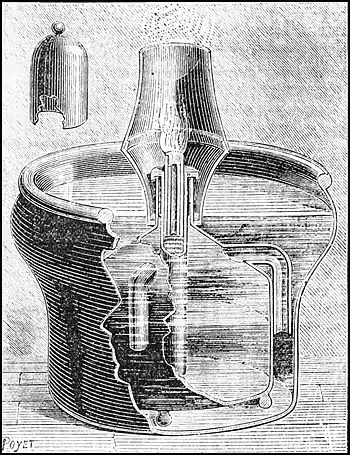 "The process of using liquid anhydrous sulphurous acid in siphons is free from these inconveniences. The siphons contain 750 grammes of the acid, and one of them is efficient for the disinfection of twenty cubic metres of space. In using the siphons a vessel is set in the middle of the room, and is put in communication with the outside by means of an India-rubber tube passing through a hole in the door. The door having been closed, the orifice of the siphon is inserted into the India-rubber tube, and, the liquid being let in through it, is freely evaporated in the air of the room. This process is very convenient; it avoids the danger of fire, and does not affect metallic objects; and the penetrative force of sulphurous acid thus administered appears to be greater than that of the acid obtained by burning sulphur. The only drawback to its use is the high cost. The siphons are sold to the general public for a dollar each, but can be bought in large quantities
