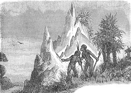 from the surface but from some depth underneath the ground, and plaster it into tunneled ways. Occasionally these run along the ground, but more often mount in endless ramifications to the top of trees, meandering along every branch and twig, and here and there debouching into large covered chambers which occupy half the girth of the trunk. Millions of trees in some districts are thus fantastically plastered over with tubes, galleries, and chambers of earth, and many
