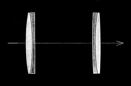 The first is that used by Alvan Clark, in the largest and most perfect telescopes ever constructed. It consists of a double-convex lens of crown-glass, combined with a plano-concave lens of flint-glass, the crown-glass lens being placed in front. Both surfaces of the crown-glass lens and the first surface of the flint-glass lens have the same curvature. The focal length of this object-glass is nearly equal to