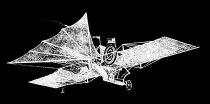 of importance designed to fly without the aid of muscular power. The chief feature was the very great expanse of its sustaining planes, which were larger in proportion to the weight than in many birds. The machine advanced with its front edge a little raised, and the air acting upon the lower surface, when the proper speed had been attained, was expected to lift and sustain it. This speed at the start-off was to be got by running down an inclined plane or hill, and the object of the screw-propeller was simply to keep up the motion. It is unnecessary to say that this machine did not work, and yet Henson evidently had a glimmering of what is required. He introduces the inclined plane and propeller, but does not apply them in a practical way. Such a machine, of course, would be completely at the mercy of the winds; and while he might find a convenient hill to roll down in order to get the required velocity, in coming to earth again there might be trouble,