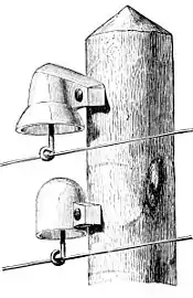 Underground wires are, however, sometimes employed. They are insulated by a coating of gutta-percha, and are usually laid in pipes, an arrangement which admits of their being repaired or renewed without opening the ground except at the drawing-in boxes. There is less leakage of electricity from subterranean than from air lines, but their cost is greater, and they are less suited for rapid signalling on account of the retardation caused by the inductive action between the wire and the conducting earth, which is similar to that between the two coatings of a Leyden jar.