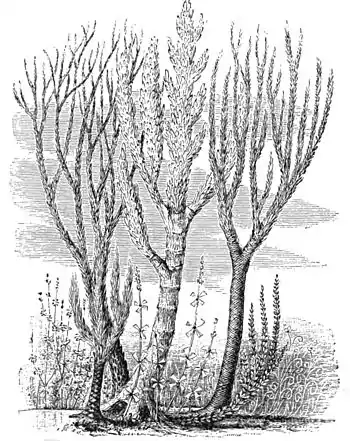 Fig. 6.—Silurian Vegetation Restored. Protannularia, Berwynia. Nematophyton, Sphenophyllum, Arthrostigma, Psilophyton.