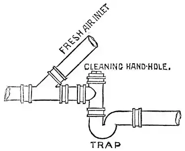 lated directly through the soil-pipes to the tops of the houses? The reply to this is, that where there are properly constructed self-cleansing sewers, having no cess-pool connections, and the house connections of which are made under the control of the engineer having charge of the sewers, it is well to omit the trap between house and sewer, and let the latter ventilate directly through the soil-pipes; but exception should be made to this where the top of a soil-pipe would be on a level with or below the windows of inhabited rooms in a neighboring house. When the house-drains are connected with a cess-pool, or with a sewer presenting the characters of a cess-pool, it is safer to insert the trap; in which case there should always be a fresh-air opening between the trap and the house. If the pipes and fixtures in a house are properly arranged, and the joints are all tight, there is very little risk to the inhabitants of the house itself in having a direct connection with an ordinary sewer without a trap; the danger really being to the inhabitants of neighboring houses. On the other hand, if the trap between the sewer and the house be properly inserted, it creates no risk of danger or nuisance in the house to which it is applied, and costs little. The argument that it checks discharges from the house and tends to produce deposit in the horizontal part of the soil-pipes next to it on the