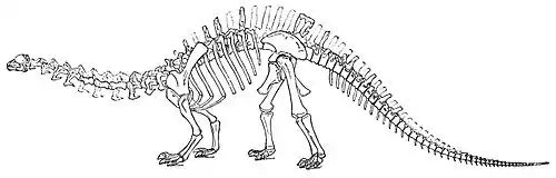 Fig. 7.—Brontosaurus, one ninetieth natural size (restoration by Marsh).