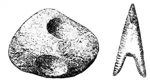 | Fig. 1.—Hammering-Pebble. | Fig. 2.—Flint Arrow-Head. |