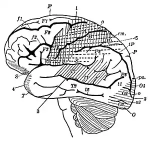 At the extreme back is the visual area which receives impressions from the eye (Fig. 3, 2; Fig. 4, 2). In the lower part