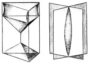 Brewster has added many experiments to those of Plateau's. The next one given is his, and a very curious one it is too. Two rectangles are made of the copper wire; one is slipped within the other and held at right angles to it; they are in this position dipped into the suds. The system which starts into being can be seen in Fig. 7. The central oval stands diagonally just half-way between two of the angles made by the crossed frames. Now, if the frames are gradually turned upon each other, which it is very