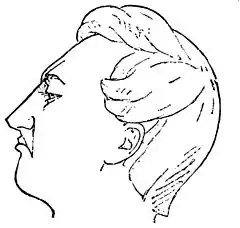 Fig. 16.—Contemptuous Expression, with Vertical Wrinkles on the Forehead. wanting, we judge that the person is under the influence of both anger and contempt (Fig. 16). The expressions of contempt and bitterness may be combined, as signs of a corresponding complexity of feelings. The expression of contempt occurs physiognomically with pretentious, arrogant men, who are accustomed to measure the conditions and opinions of others by the scale of their own imagined excellence, and who are hard to satisfy. This trait is manifested in the eye by highly arched brows, horizontal wrinkles, and depressed lids. In the mouth, we perceive that the middle of the lower lip seems pressed up, and that under its red border, which is slightly thrown out, an arched wrinkle is developed, the convexity of which is turned upward.—Translated for the Popular Science Monthly from the Revue Scientifique.