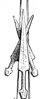 The old man had a fillet of white feathers tied round his head, which partly confined his black, coarse, and entangled hair. His face was crossed by two broad transverse bars: one, painted bright red, reached from ear to ear and included the upper lip; the other, white like chalk, extended above and parallel to the first, so that even his eyelids were thus colored. The other two men were ornamented by streaks of black powder made of charcoal. The party altogether closely resembled the devils which come on the stage in plays like Der Freischütz.
