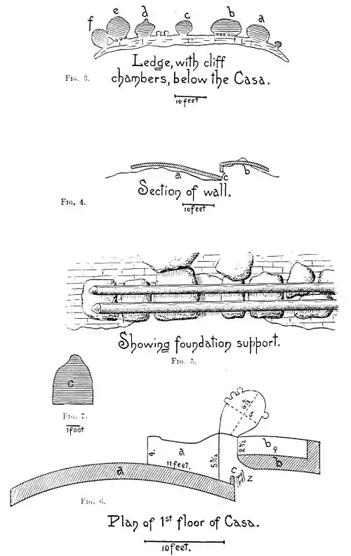 were evidently taken dry. They average about fifteen inches in circumference, and were set into the walls at the time the latter were built. They were burned off flush with the wall outside.
