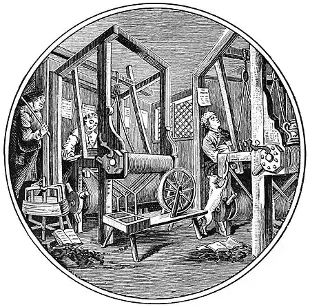 makes of American looms, the Crompton and the Knowles, are generally recognized as superior to any foreign patterns and are largely used in foreign mills.[1] Crompton's fancy power-loom was applied to woolen fabrics in 1840. "Not a yard of fancy woolen fabrics had ever been woven by a power-loom in any country," wrote Samuel Lawrence, "until it was done by William Crompton at the Middlesex Mills, in Lowell, in 1840." It was affirmed before a congressional committee in 1878 that "upon a Crompton loom, or looms based upon it, are woven every yard of fancy cloth in the world." The importance of this contribution to the wool manufacture can only be appreciated in connection with the fact that three quarters of all the woolen cloths now worn are woven upon fancy looms. Up to that time it had been