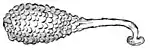 Fig. 6.—Pollinium upright cohesion is but slight, for, on the application of a pollinium to the viscid surface of a stigma, several grains are left on it, and thus one pollen mass will serve to fertilize several flowers. One of the most striking features of these pollinia is that the stem or caudicle undergoes on exposure to the air an act of depression (Fig. 7), so that while it stands erect on its first withdrawal from the anther cell, in a short time a contraction in the substance of the caudicle is observed, and then the pollinium becomes horizontal.